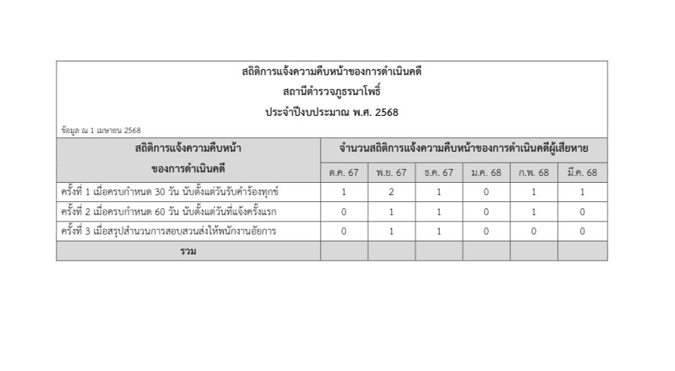 สถิติการแจ้งความคืบหน้าของการดำเนินคดี